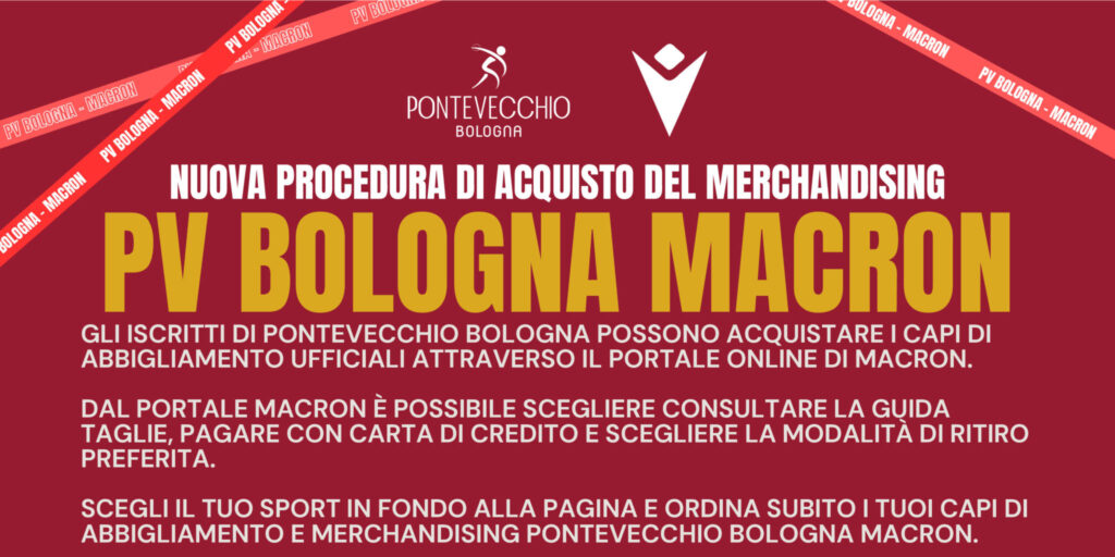 Anche nella stagione 2025/2026 Macron veste le atlete e gli atleti di PV Bologna con capi esclusivi e di alta qualità: maglie e divise da partita e da gara, tute e abiti di rappresentanza, abbigliamento da allenamento, borse, zaini, trolley, e tutto il necessario per scendere in pista e in campo nel migliore dei modi e con il giusto stile.